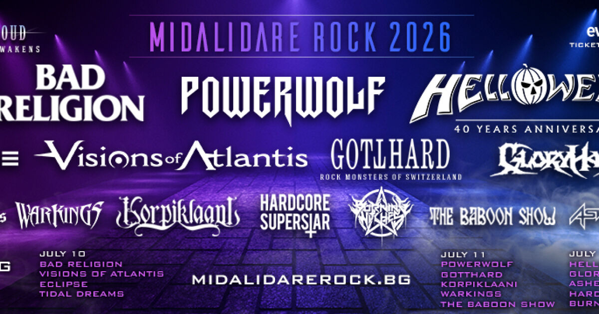 Шестото издание на Midalidare Rock In The Wine Valley ще се проведе межди 10 и 12 юли тази година. Хедлайнери през 2026-а година са Bad Religion, Powerwolf и Helloween, като освен тях на голямата сцена ще видим още 11 световни банди. Последните три които се включват към фестивала в долината на виното са Eclipse, Ashes of Ares и Tidal Dreams.