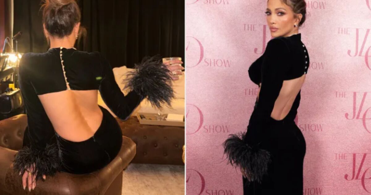 За последната вечер от „The JLo Show“, проведена в The Colosseum at Caesars Palace, изпълнителката избра черна изрязана кадифена рокля, която акцентира върху корема и гърба ѝ. Дизайнът е дело на Lily Phellera и се отличава с висока яка, стратегически разположени изрязвания в областта на талията и декоративни копчета със Swarovski кристали по гърба. Впечатление правят и драматичните маншети с пера, които добавят театралност и изисканост към визията.