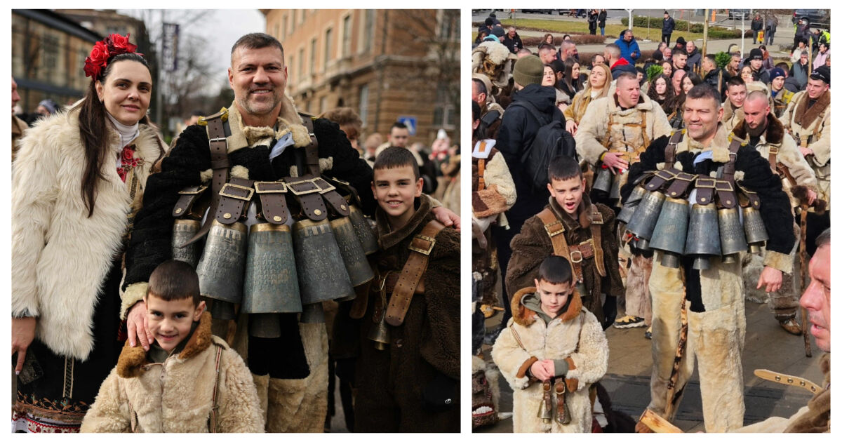 Тервел Пулев дефилира на „Сурва“ 2026 в Перник като сложи страшна маска и носи най-тежките звънци на фестивала. Семейството на боксьора го подкрепи, като се включи в традиционните ритуали за прогонване на злите сили и наричане за здраве и плодородие.