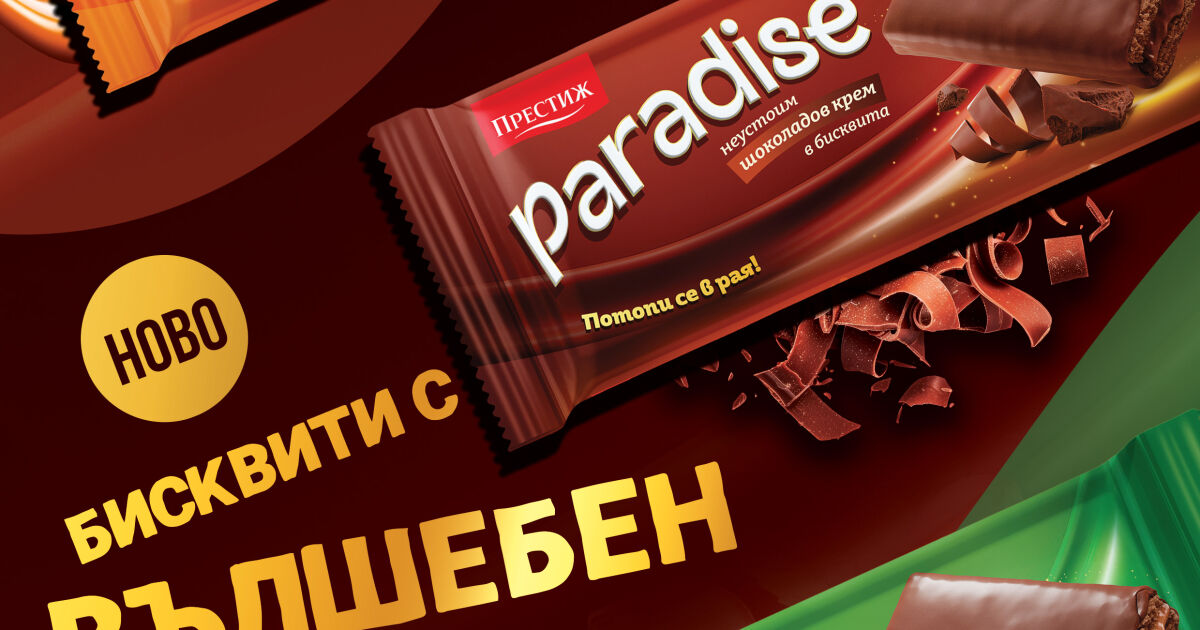 ПРЕСТИЖ Paradise е фюжън от фини какаови бисквити, кадифена шоколадова глазура и богат ароматен крем