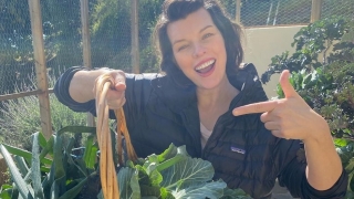 Мила Йовович прекъсна самоизолацията си, за да набере кейл и лук от градината си